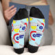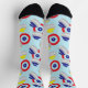 Novelty socks featuring a pattern of curling stones and targets. For curlers, curling coaches, and fans of ice sports.