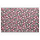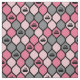 Fabric featuring an ogee tile pattern with curling rocks in shades of pink and grey on black background. Perfect for curlers and curling fans.