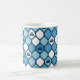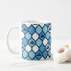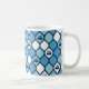 Mug featuring an ogee tile pattern with curling rocks in shades of blue and white. Perfect for curlers and curling fans.