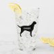 Enjoy a pint of your favourite cold beverage out of this unique 16 oz drinking glass. Curly Coated Retriever silhouette with custom text for your name or slogan. Makes a fun personalized gift for Curly lovers. Visit Jenn's Doodle World for more custom drinkware and dog breed designs.