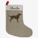 Cute fabric print resembles linen or burlap with a space to add your name or your dog’s name. A classic country style Christmas stocking with a Curly Coated Retreiver silhouette. Everyone wants to be a part of the seasonal festivities and our Curly friends are no exception. Fill with toys and treats for your four legged family member. Festive dog lover’s holiday decor for home or office. This Xmas stocking is available in many more dog breeds by Jenn’s Doodle World.