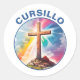 Cursillo Wood Cross With Rainbow and Clouds Classic Round Sticker
