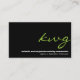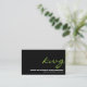 Make your monogram stand on its own merit with this striking business card. Any amount of initials or word in a bright green cursive makes an impact against rich black. The reverse prints customized text in white against the same green. Versatile, contemporary card for businesses with a creative edge including business services, retail, wholesale, marketing, advertising or companies in the entertainment field. Available in alternate colours with matching products.