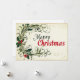 An elegant Christmas card design featuring "Merry Christmas" in a flowing cursive font, accented by subtle red and green Christmas greenery. The white background enhances the sophisticated look, and the ample space allows for personalized text or logos, making it a versatile choice for any occasion.