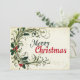 cursive Merry Christmas, Christmas greenery accents, elegant holiday card, white background card, festive typography, minimalist Christmas card, business holiday card, red and green accents, holiday greeting card, simple Christmas card