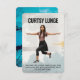 Curtsy Lunge - Fitness Card, a set of customizable fitness cards to help make workouts motivational and fun, featuring a woman wearing modest exercise clothes with a skirt. Edit the back of the card, as well as title and descriptions of the card if you want. If you are a fitness trainer or instructor that wants to use this as part of your class or as a gift, you can add your name or business logo in the Editor if you choose.