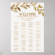 This curved branch gold alphabetical seating chart poster is perfect for a modern wedding. This sign can be used to organize your guests alphabetically or by table number. The classic design features a metallic faux gold foil branch. This wedding poster includes enough room for up to about 120 guests. Make room for more (or less) guests by clicking the "customize" button and decrease or increase the size of the font. In addition to the placement of each guest, personalize this sign with the names of the bride and groom and the wedding date.