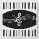 Curved piano keys and treble clef on a black and dark grey musical note backgrounds, great gift for any musician. sgb01
