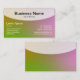 A business card template with a semi-transparent curved header area for the company name and business type etc, with name, job title and other contact details in the section below. The Background and header panel are repeated on the reverse side and can be further customized.