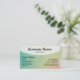 A business card template with a semi-transparent curved header area for the company name and business type etc, with name, job title and other contact details in the section below. The Background and header panel are repeated on the reverse side and can be further customized.