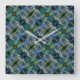 Curved transverse stripes in showy green and blue square wall clock