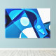 This canvas presents an abstract design of curved shapes and fluid lines in a vibrant palette of blue tones. Circular and geometric figures interlend in layers that evoke movement and depth, creating a modern and sophisticated work. Ideal for contemporary spaces, this visually intriguing piece adds an elegant and dynamic touch to any atmosphere.