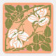 Showing a beautiful vintage Art Nouveau design of curving rose stems, flowers, and leaves. The background is peach colour.