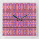 Curvy Plaid Pattern Square Wall Clock by Kristie Hubler, fabric design pattern 42" x 36", with flowers, plaid lines, spirals, wiggles, swirls, S curves, and dots. Very feminine. It's about growth, bloom, creation, power