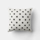 This cushion has a repeating black circle pattern on a white background. It can be designed easily and is characterized by its neatness.