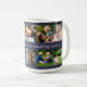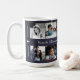 "We are family name and this is our story since year" handwriting custom white calligraphy script (changeable text) and your ten family images over a dark midnight navy blue chalkboard background making a beautiful 10 photo collage mug to mark your anniversary with a keepsake gift or just sip your favourite coffee at home! +++++++++++ Easy to personalize with your custom square images and text!