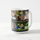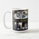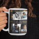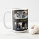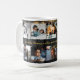 "We are family name and this is our story since year" handwriting custom faux gold brushed calligraphy script (changeable text) and your ten family images over a dark brown barn wood background with strings of twinkle yellow warm lights making a beautiful 10 photo collage mug to mark your anniversary with a keepsake gift or just sip your favourite coffee at home! +++++++++++ Easy to personalize with your custom square images and text!