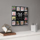 Custom 12 Photo Collage Family Name Monogram Black Square Wall Clock