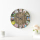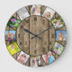 Custom 12 Photo Collage Rustic Natural Wood Round Large Clock