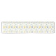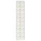 Hanukkah table runner with traditional symbols of angels, menorahs, and the Star of David. To add interest to the background, faded small squares and curved branches were added.