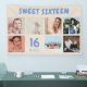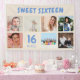 Create your own custom photo collage banner for a 16th Birthday Party. The template is set up for you to add your custom name, age and your favourite photos. Your photos will automatically appear as a photo collage. The banner has a boho style and a modern retro chequerboard in blue and cream. The birthday banner is complete with "Sweet Sixteen" and the age 16 lettered in cute retro bubble typography.