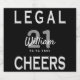 A bottle label for a fun 21st birthday party for both him and her. Personalize and add a name, age 21 and a date. Date of birth or the date of the party. White and grey coloured letters, numbers. A classic black background. The text: Legal and Cheers in large white block letters.