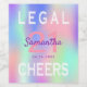 A girly and feminine bottle label for a fun 21st birthday party. Personalize and add a name, age 21 and a date. Date of birth or the date of the party. Mint green and pink letters. 21 is written with in faux glitter. The name is written in a modern hand lettered style script. A soft rainbow coloured backround in pink, purple, mint green. The rainbow a symbol of hope. The text: Legal and Cheers in large whte block letters.