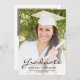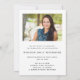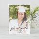 Modern graduation announcement featuring a custom vertical photo on the front and a horizontal photo on the reverse. The word "Graduate" appears in black script, with the graduate's name, school and year of graduation below in sans serif font. Personalize the reverse side with details about the graduation and the graduate's future plans in black text on a white background. Easily replace the sample images with photos of your own graduate. A white gradient screen helps ensure the text on the front of the card pops. Ideal for high school or college graduation.
