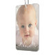 “Love.” A fun, playful visual of white script handwriting and cute, playful hearts against the photos of your choice, helps your car smell as sweet as the loved ones in your photos. Spread love and joy whenever you drive around town with this stylish and modern, personalized car air freshener. Custom double-sided, so you can personalize with two different photos. Proudly display this in your car!