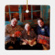 Custom 2-sided Family Photo White Script Christmas Ceramic Ornament
