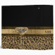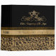Lovely all purpose Avery binder, with a brown and black spotted leopard pattern, on the bottom and a solid black, on top. Graphics of a pretty brown satin looking ribbon runs across the middle of the binder and has a gold tone floral flourish, in the middle of the ribbon. Customized for your needs by me.
