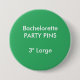 Custom 3" GREEN Large Round Bachelorette Party Pin for bride, bridesmaids, mother-of-the-bride names, jokes, fun at the bridal shower, bechelorette night, weekend or party, or wedding to fully personalize. Create your own, make your own, design your own, upload your own photo, design, or use multi font text to customize.