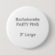 Custom 3" Large Round Bachelorette Party Pin for bride, bridesmaids, mother-of-the-bride names, jokes, fun at the bridal shower, bechelorette night, weekend or party, or wedding to fully personalize. Create your own, make your own, design your own, upload your own photo, design, or use multi font text to customize.