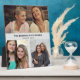 Lovely arrangement of four family photos collage divided in 3 sections with a landscape horizontal rectangle frame on the top side and two portrait vertical rectangle frames on the right side with a texts on the lower side. Personalize it with your own photos and texts. Perfect a custom made gift for your loved ones.