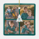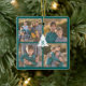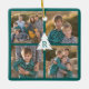 Custom 4 Photo Christmas Tree Monogram Teal Ceramic Ornament