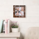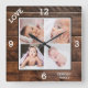 Custom 4 Photo Collage Family Name Love Dark Wood Square Wall Clock