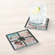 Custom 4 Photo Collage Monogram Black Glass Coaster