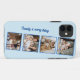 This romantic, cool, and modern case is perfect for anyone who wishes to carry their loved one with them. It features four customizable family photographs and pictures. It also displays a place for a monogram text beside photos on, blue background. Feel free to use this template to add photos of any kind. You can use your creativity here.