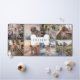 Custom 8 Photo Collage Dog Bone Pet Grey Desk Mat