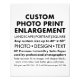 Custom personalized studio quality 8" x 10" Portrait Photo Enlargement Print on HP Premium Instant-Dry Satin Photo Paper that produces fade-resistant, high resolution images with a satin finish, deeper blacks, more vivid colours, and better gloss uniformity, which is why it's used by professional photographers. Choose from portrait, landscape or square in any custom size up to 40" x 60", with 20 standard size options. Weight: 260 g/m² per ISO 536. Thickness: 10.3 mil/260 microns per ISO 534. Upload your photo - and even add text - to display in the frame or photo display of your choice.