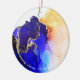 Delight your wedding or event guests with a beautiful piece of abstract art. Easily customize a keepsake ornament with names and anniversary date. Alcohol ink art on an ornament. Original abstract by international artist Pauline Benjes. Custom Abstract Blue Orange Gold Wedding Favour Ceramic Ornament.