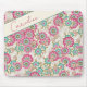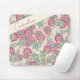 Cute colourful mouse pad with contemporary pink, aqua blue, turquoise green, taupe beige and green coloured Japanese style flower pattern. With room to personalize or customize with a name, monogram or initials of your choice.
