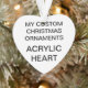 Custom printed personalized HEART ACRYLIC CHRISTMAS TREE ORNAMENT DECORATION Blank Template - 3" high x 2.8" wide x 0.187" thick. Design, create, make your own. Your photo, image, text, logo, graphics in full colour print on both side of the ornament, using the AcryliPrint®HD printing process. Made of ultra-durable acrylic.