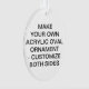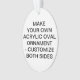 Custom printed personalized OVAL ACRYLIC CHRISTMAS TREE ORNAMENT DECORATION Blank Template - 3.32" high x 2.37" wide x 0.187" thick. Design, create, make your own. Your photo, image, text, logo, graphics in full color print on both side of the ornament, using the AcryliPrint®HD printing process. Made of ultra-durable acrylic.