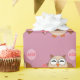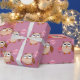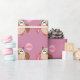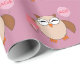 This awesome wrapping paper features a cute brown owl with big sleepy eyes. The owl is holding a pretty pale pink balloon and a bouquet of bright pink flowers wrapped in a pale pink cone.