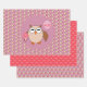 This awesome gift wrap set features a cute brown owl with big sleepy eyes. The owl is holding a pretty pale pink balloon and a bouquet of bright pink flowers wrapped in a pale pink cone.