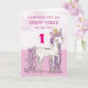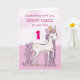 A sweet pink pony just like your great niece is prancing with the number one! Gold looking details are woven in her mane and tail. Perfect card to wish your great niece on her birthday!