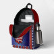 This design features American flag and map pattern with red blue and white stripes. Custom American flag monogrammed name backpack in high quality. This design can be easily edited. If you need help with the customization please message me via Zazzle.