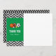A birthday party thank you card featuring all-star sport theme with black chevron and green banner