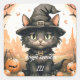 Pumpkins surround a cute black kitten in a background that is Halloween-themed.perfect for the Halloween lover. add your personalized angel number